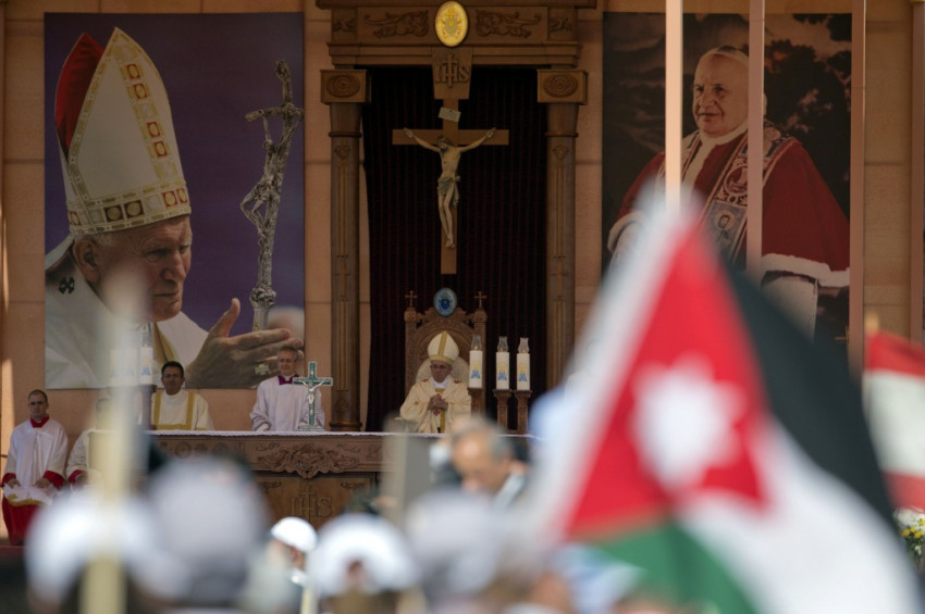 A szentmisére számos keresztény menekültet vártak Palesztinából, Szíriából és Irakból. Az olasz és arab nyelvű szertartáson közel 1400 gyermek járult első szentáldozáshoz. A pápai szertartást óriáskivetítőkön követhették a jelenlevők. XVI. Benedek 2009. május 10-én ugyanitt mutatott be szentmisét.
