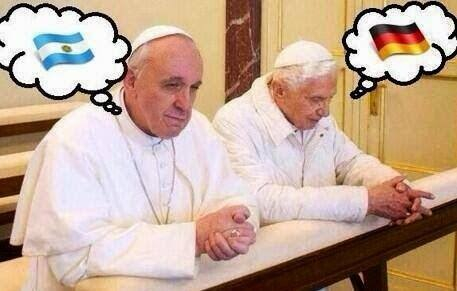 A L’Osservatore Romano tulajdonképpen megjósolta a közelmúltbéli cikkében, hogy Argentína és Németország jut be a döntőbe. Az egykori labdarúgó, hívő katolikus Tommaso Damiani írta az újságban, hogy „ez egy történelmi jelentőségű döntő lesz a szokatlan szurkolói (azaz Ferenc és Benedek) miatt”.