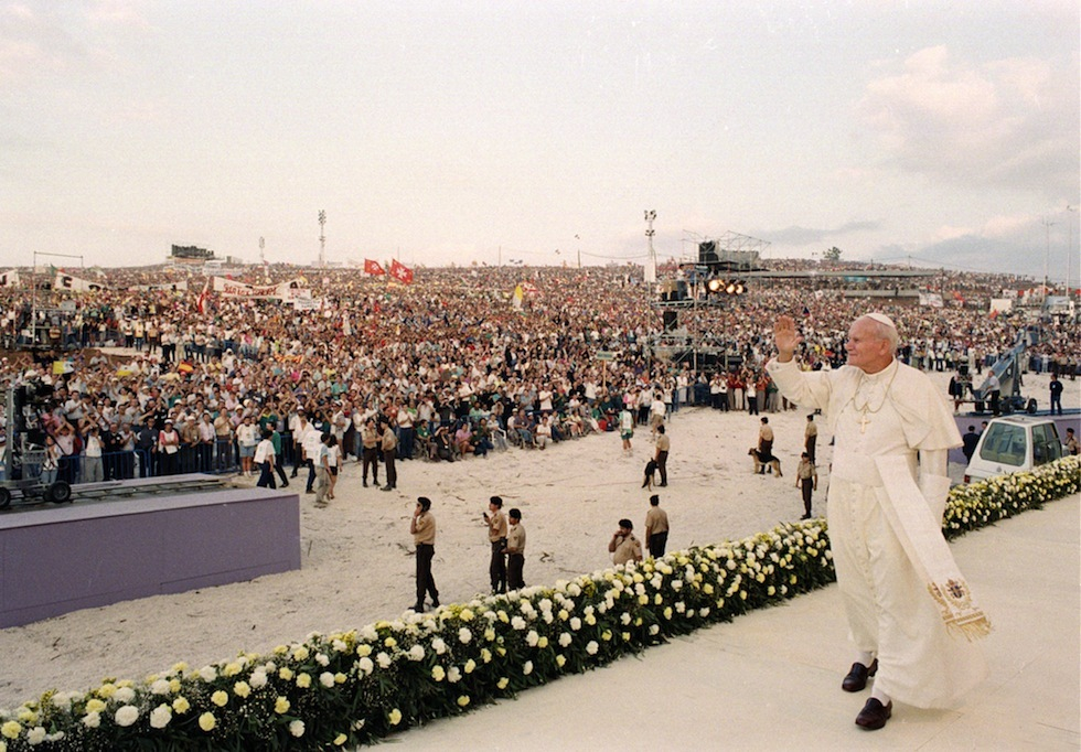 Négyszázezer fiatal, 1747 önkéntes, 1204 akkreditált újságíró gyűlt össze Santiago de Compostelában 1989. augusztus 19-én és 20-án, hogy II. János Pál pápát várja a Buenos Aires-i találkozó után megtartott második ifjúsági világtalálkozón. Azóta eltelt huszonöt év, és ma a santiagói egyház örömmel és tisztelettel emlékezik Szent II. János Pálra.