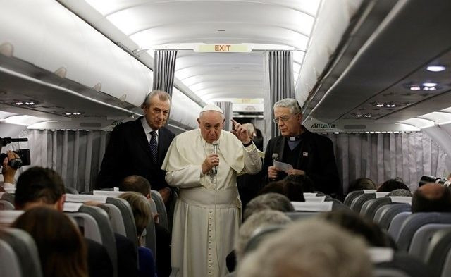 Vasárnap délután Ferenc pápa az Isztambulból Rómába tartó repülő fedélzetén megtartotta szokásos sajtótájékoztatóját, válaszolva a kíséretében utazó újságírók kérdéseire. Számos téma fölmerült: a terrorizmus, a keresztények vértanúsága, az ökumenizmus, a fegyverkereskedelem, a vallásközi párbeszéd.
