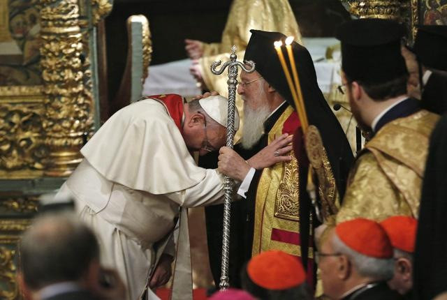 A fanari Szent György-székesegyházban került sor szombaton délután az ökumenikus imádságra Ferenc pápa és I. Bartholomaiosz konstantinápolyi pátriárka között.