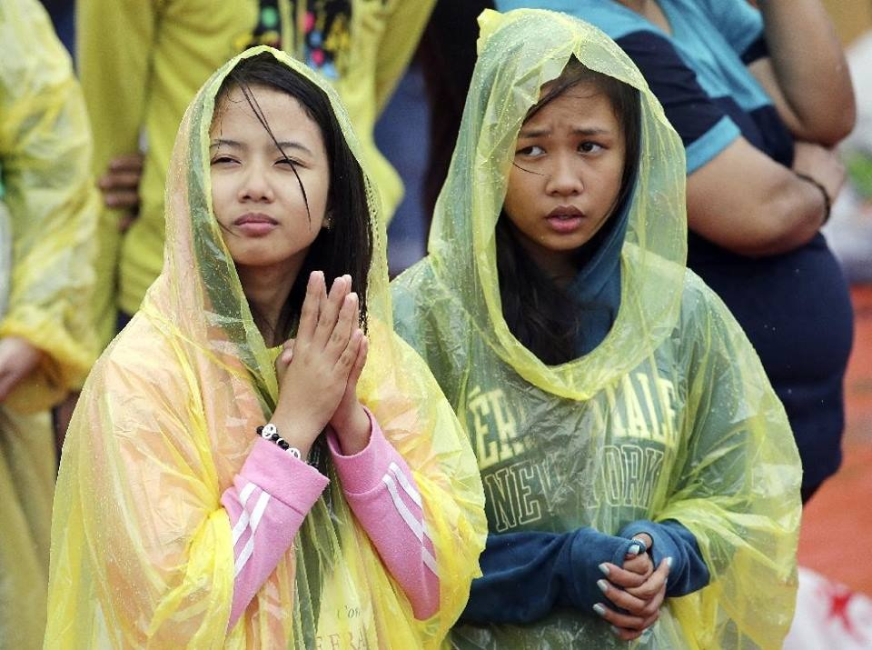 Az esős időben harmincezer fiatal várta a pápai találkozót, mely igeliturgia keretében zajlott le. A program elején tanúságtételek hangzottak el egy kislány és két fiú részéről. Az alig 14 éves lány, Jun azokról a tapasztalatairól mesélt, amelyeket utcagyerekként élt meg. Jelenleg a TKK Alapítvány egyik árvaházának lakója. Ferenc pápa pénteken kereste fel az egyik ilyen manilai befogadó központot, ahol 300 kisgyermekkel találkozott. A kislány nehezen tudta befejezni kérdéseit, mert könnyekre fakadt. A pápa felállt, odament hozzá és megölelte.