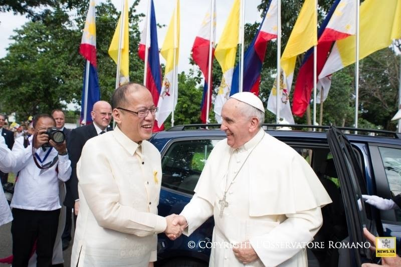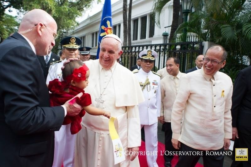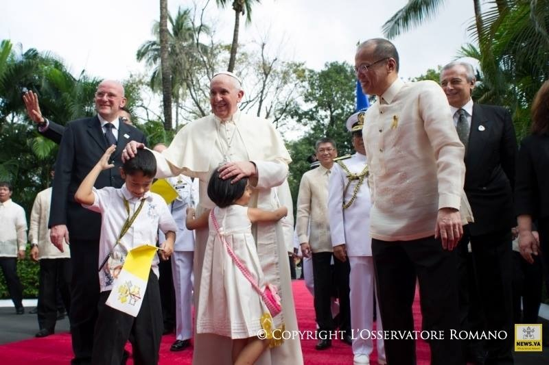 Miután udvariassági látogatást tett a Fülöp-szigeteki elnöknél, Benigno Aquinónál, Ferenc pápa pénteken a manilai elnöki palotában találkozott a politikai vezetőkkel és a diplomáciai testület tagjaival.