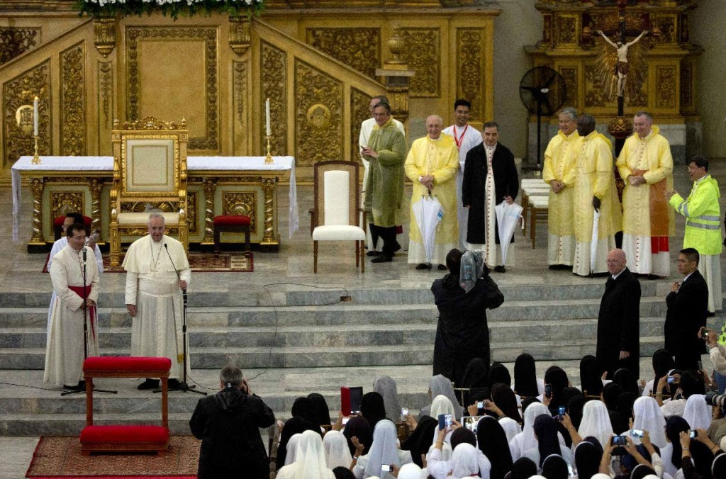 Nagyon sokan megszenvedték a tájfun pusztítását a Fülöp-szigeteken. Ennek a székesegyháznak az újjáépítése az emberek nagylelkűségéről tanúskodik. Ajánljuk Isten irgalmába mindazokat, akik életüket vesztették, kérjünk vigaszt és lelki békét azok számára, akik szeretteiket siratják. Ugyanakkor adjunk hálát az Úrnak, amiért olyan sokan segítettek ezekben a hónapokban elhordani a romokat, látogatták a betegeket és a haldoklókat, vigasztalták a szenvedőket, eltemették a halottakat. Az ő jóságuk és a világ számos részéről érkező nagylelkű segítség annak a jele, hogy Isten soha nem hagy magunkra minket!