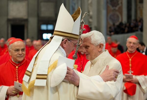 Az emeritus pápa 2014. február 22-én is részt vett a konzisztóriumon, ahol sokakat megindított alázatával: amikor Ferenc pápa odament köszönteni őt, az emeritus pápa levette pileólusát.