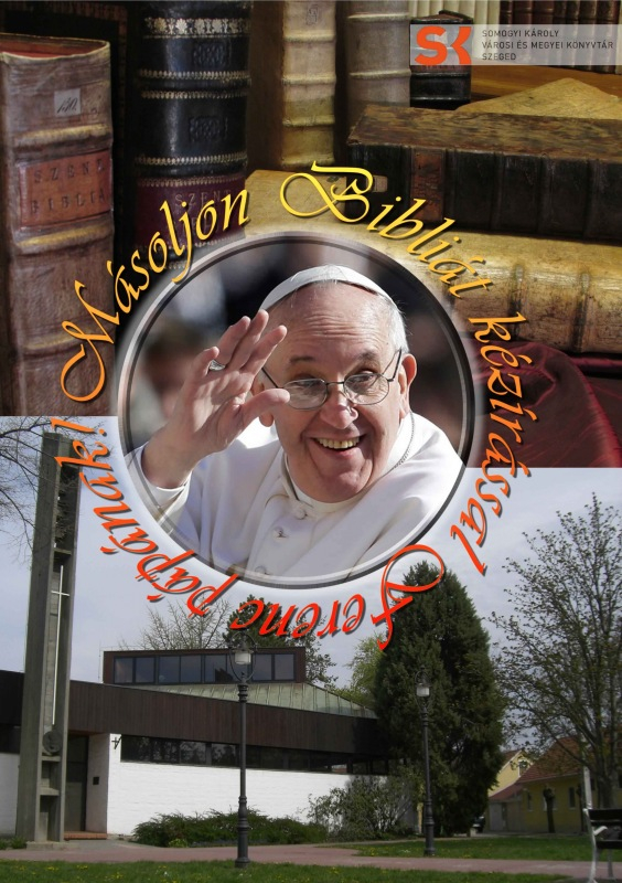 Magyarok Bibliája program: tízezer bibliamásolót keresnek a Kárpát-medencében. A teljes biblia kézzel másolásához gyűjt vállalkozó szellemű „írástudókat” a szegedi Szent Gellért-plébánia. A kézírásos Magyarok Bibliáját római zarándoklat keretében kívánják átadni szeptemberben Ferenc pápának – számol be Benyik György plébános.