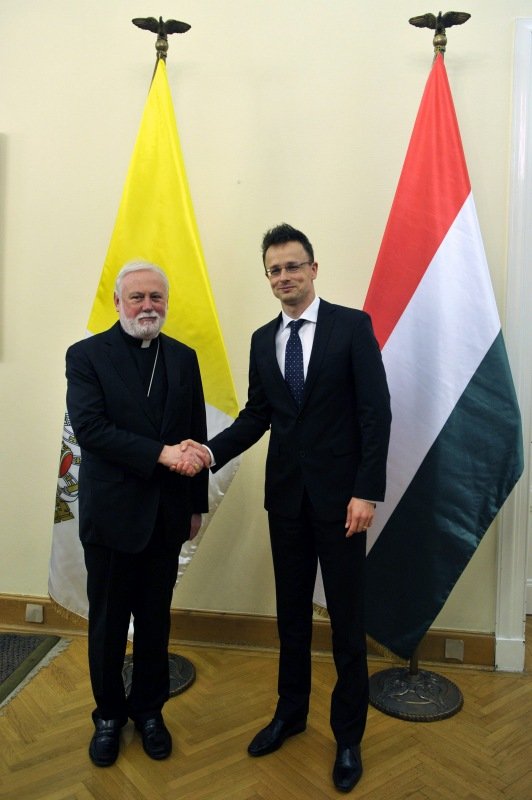 Szijjártó Péter külgazdasági és külügyminiszter Magyarország keresztény külpolitikájáról, valamint a Szentszék és Magyarország kétoldalú kapcsolatairól tárgyalt a vatikáni külügyminiszterrel. A felek beszélgetésük során kitértek a világban veszélyben élő keresztény közösségek megvédésének kérdésére és az Iszlám Állammal szembeni magyar katonai szerepvállalásra is.