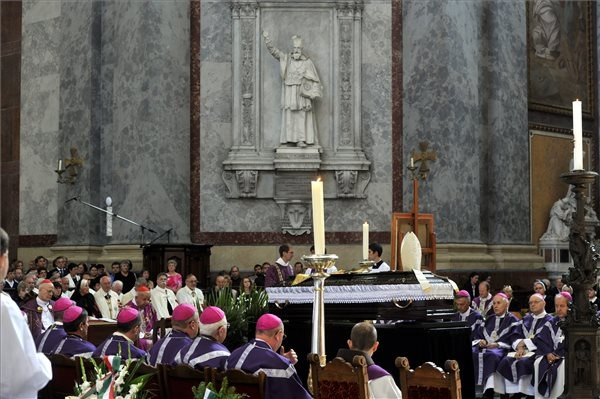A szertartáson koncelebrált Stanisław Dziwisz bíboros, krakkói érsek és Josip Bozanić zágrábi érsek megbízottja, Ivan Saska segédpüspök, Alberto Bottari de Castello apostoli nuncius, a Magyar Katolikus Püspöki Konferencia tagjai és számos Kárpát-medencéből érkezett püspök, valamint mintegy háromszáz paptestvér. A szentmisén részt vett Orbán Viktor miniszterelnök, Semjén Zsolt miniszterelnök-helyettes, az állami, társadalmi és kulturális élet képviselői, a diplomáciai testületek tagjai, a testvéregyházak képviselői.A szentmise elején Alberto Bottari de Castello apostoli nuncius tolmácsolta Ferenc pápa üzenetét, amelyet Erdő Péter bíborosnak küldött elődje haláláról értesülve.