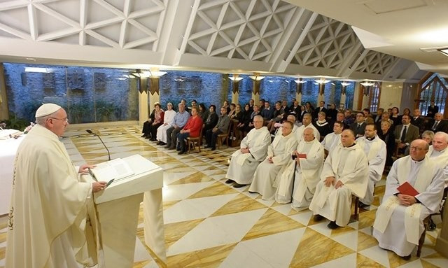A napi olvasmány Makkabeus könyvéből egy „gonosz sarjról”, Antiokhosz Epiphánész hellén királyról szól, aki pogány szokásokat vezetett be Izraelben, a „választott nép”, az akkori egyház körében. Ferenc pápa a föld alatt húzódó gyökér képét elemezte. A gyökér fenomenológiája a következő: nem látszik, úgy tűnik, hogy nem árt, de növekszik, és kimutatja saját természetét. Megfontolt sarjnak tűnt, aki az izraelitákat a környező nemzetekkel való egységre buzdította, hogy védelmet élvezzenek. „Miért van olyan sok különbözőség?” – gondolhatták. „Mert amióta elkülönültünk tőlük, sok rossz dolog történt velünk. Menjünk el hozzájuk, legyünk egyenlőek.”