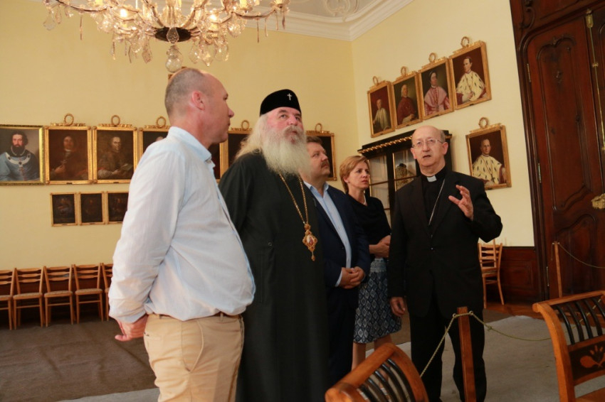 Gyula veszprémi érsek, akivel megtekintették az érseki palotát és a