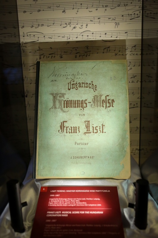 A kiállítás kuriózuma Liszt Ferenc Magyar koronázási miséjének partitúrája. A művet a zeneszerző eredetileg Ferenc József (1830-1916) magyar apostoli királlyá, valamint felesége, Erzsébet (Sissi, 1837-1898) magyar királynévá koronázására komponálta egyszeri, alkalmi előadásra.