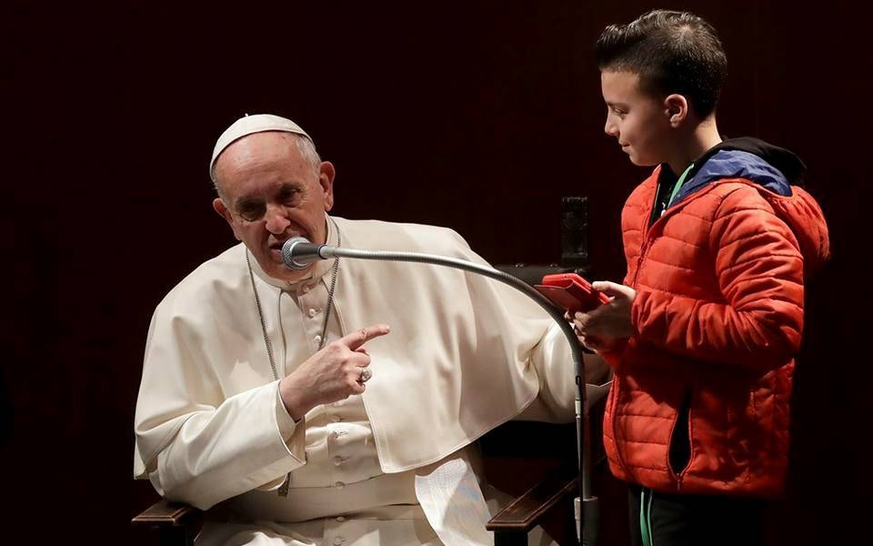 A szentatya január 20-án, a római Szent Mária Jozefa-plébánián tett látogatása alkalmával a szentmise előtt gyerekekkel is elbeszélgetett, válaszolt a kérdéseikre.
