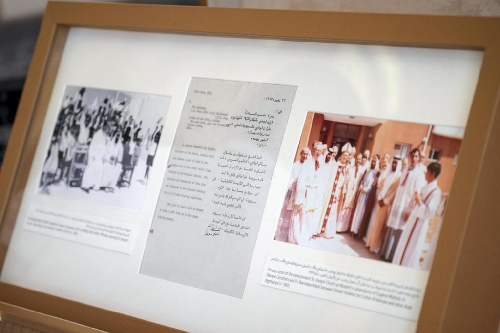 A megbeszélések után a pápa egy díszes érmével ajándékozta meg a sejket, amely Assisi Szent Ferenc és Malik al-Kámil egyiptomi szultán 800 évvel ezelőtti találkozását ábrázolja. A katolikus egyházfő viszonzásképp azt az okiratot kapta meg egy bőrdobozban, amelyet 1963. június 22-én bocsátott ki Sahbút bin Szultán al-Nahján, Abu-Dzabi akkori uralkodója, s amelyben építési telket adományozott a Katolikus Egyháznak a Szent József-templom számára a város nyugati részén – ez volt a legelső katolikus templom az Emírségekben. Az ajándék dobozában egy fénykép is volt: a történelmi jelentőségű fotón Sahbút sejk látható Luigi Magliacani Castel del Pianó-i püspökkel, Arábia akkori apostoli vikáriusával.