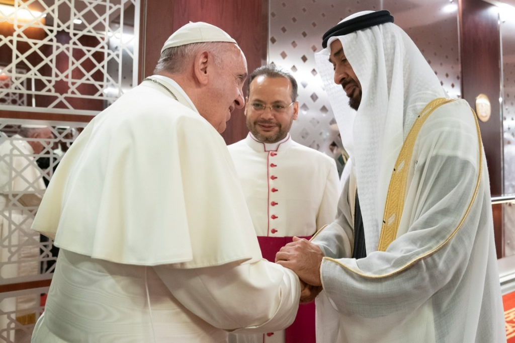Az Egyesült Arab Emírségekben tett apostoli útjának második napján, február 4-én a Szentatyát Mohamed bin Zájed al-Nahján sejk, trónörökös herceg fogadta az elnöki palotában.