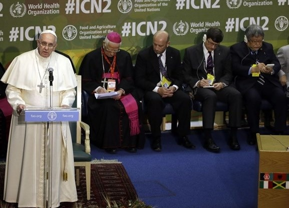Ferenc pápa november 20-án felkereste az ENSZ Élelmezési és Mezőgazdasági Szervezete (FAO) római székházát, és beszédet intézett az Élelmezési Világkonferencia ülésének résztvevőihez. A szervezet római székhelyén második alkalommal rendeztek kétnapos tanácskozást a krónikus éhínségről.