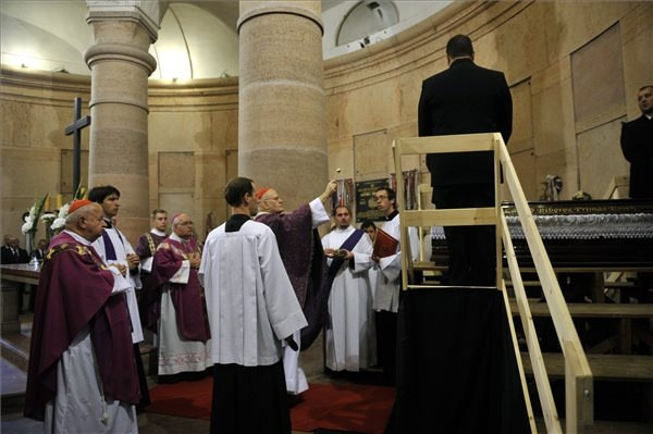 A szertartáson koncelebrált Stanisław Dziwisz bíboros, krakkói érsek és Josip Bozanić zágrábi érsek megbízottja, Ivan Saska segédpüspök, Alberto Bottari de Castello apostoli nuncius, a Magyar Katolikus Püspöki Konferencia tagjai és számos Kárpát-medencéből érkezett püspök, valamint mintegy háromszáz paptestvér. A szentmisén részt vett Orbán Viktor miniszterelnök, Semjén Zsolt miniszterelnök-helyettes, az állami, társadalmi és kulturális élet képviselői, a diplomáciai testületek tagjai, a testvéregyházak képviselői.A szentmise elején Alberto Bottari de Castello apostoli nuncius tolmácsolta Ferenc pápa üzenetét, amelyet Erdő Péter bíborosnak küldött elődje haláláról értesülve.