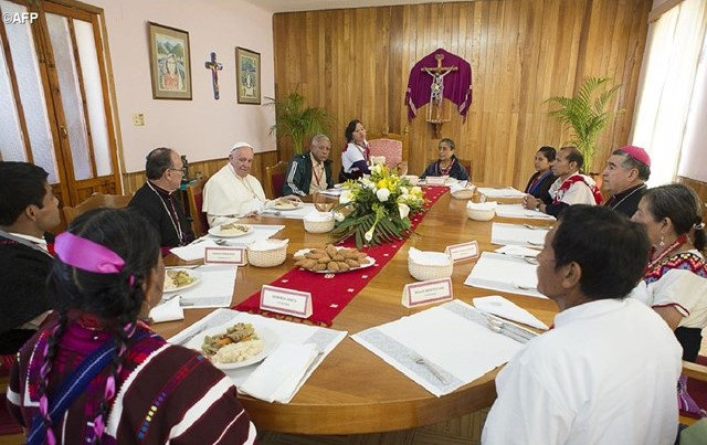 Ferenc pápa együtt ebédelt az őslakosok egy küldöttségével. Nyolc őslakos képviselte a helyi kultúrát, köztük egy nagyon egyszerű életvitelű és megnyerő pap, egy diakónus a feleségével, egy szerzetesnő, egy fiatal és egy katekéta. A pápa nagyon egyszerűen, kötetlenül elbeszélgetett velük. A Szentatya mindenki iránt ki akarja mutatni közelségét, mindenkiért imádkozik – tette hozzá a vatikáni szóvivő.